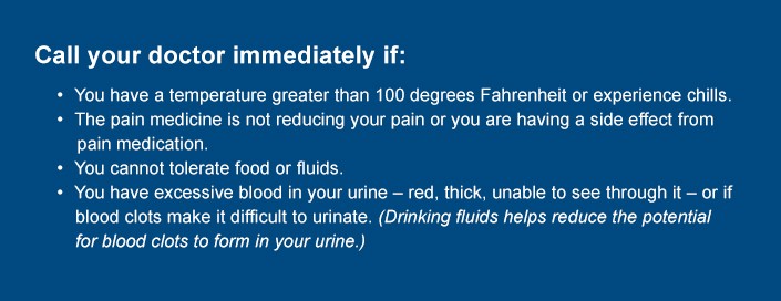 - Pain within the first 24 to 48 hours in your kidneys, abdomen, lower back and sides. Pain may increase when you urinate. Take medicine as prescribed.